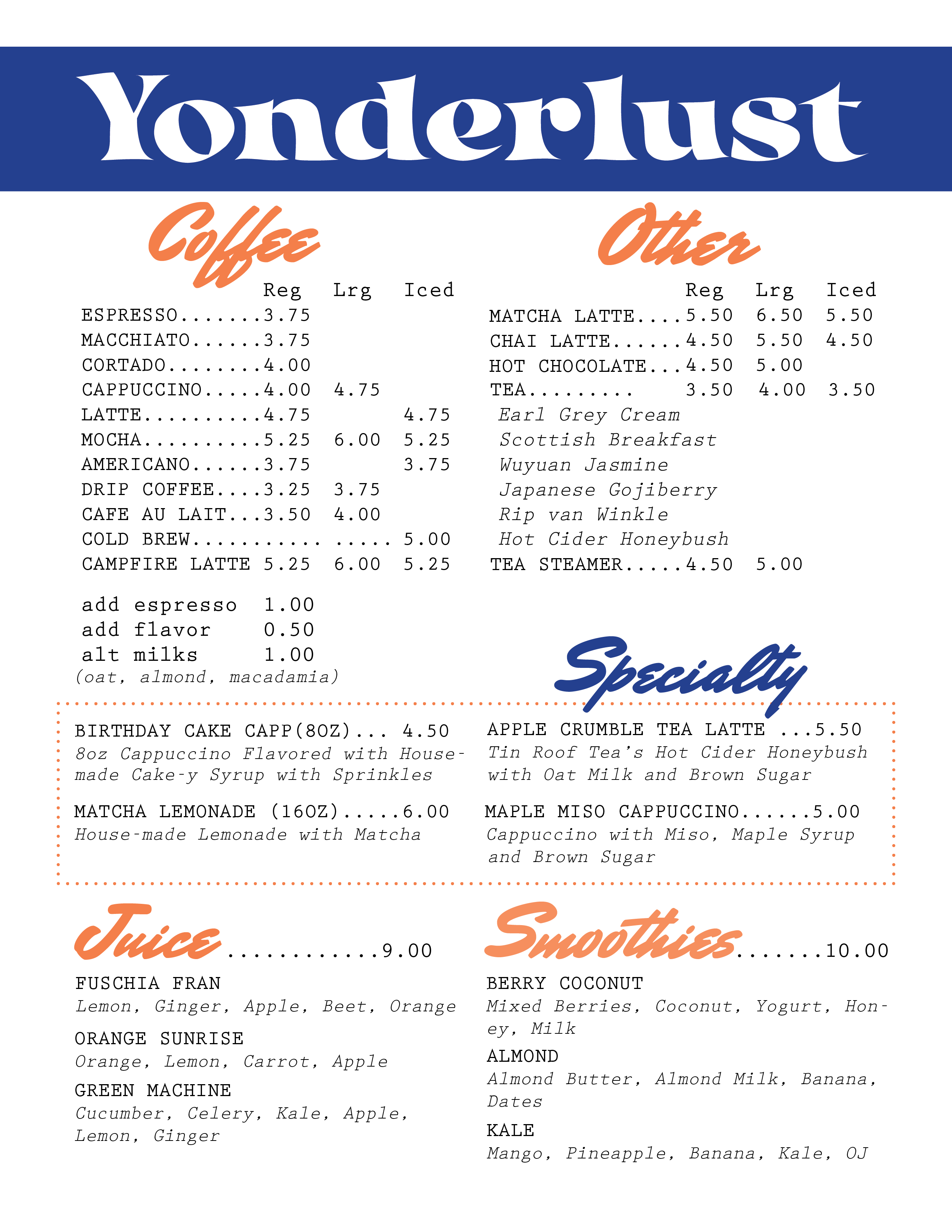 We feature local brands like Joe Van Gogh Coffee (Durham, NC), Strong Arm baked goods (Oxford, NC), Homeland Creamery (Julian, NC), and regionally sourced produce from Happy Dirt.